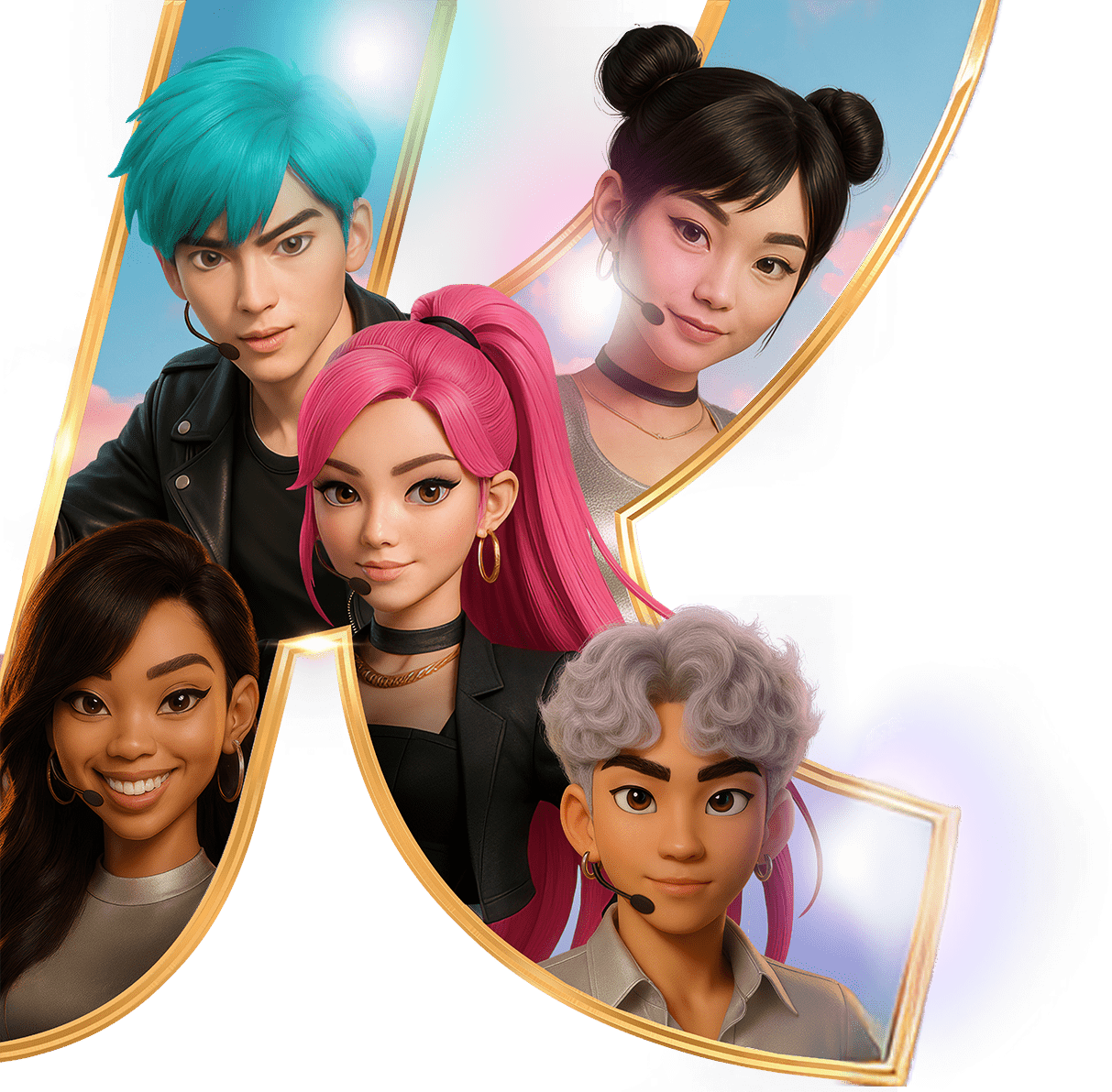 A fusion of sound, style, and virtual charisma — Luna, Mia, Jade, Xander, and Gray blend the magic of live K-Pop performance energy with the digital world, uniting fans through music, movement, fashion and imagination.